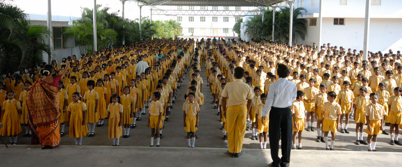 “Knowledge moves victory” is our school motto. The gopuram represents the south Indian culture in general and famous kandaswamy temple at kalipatti particular. The spear is the remover of ills and evils. The book represents knowledge; the lamp below is the dispellor of ignorance and the light kindles enthusiasm which leads to success.